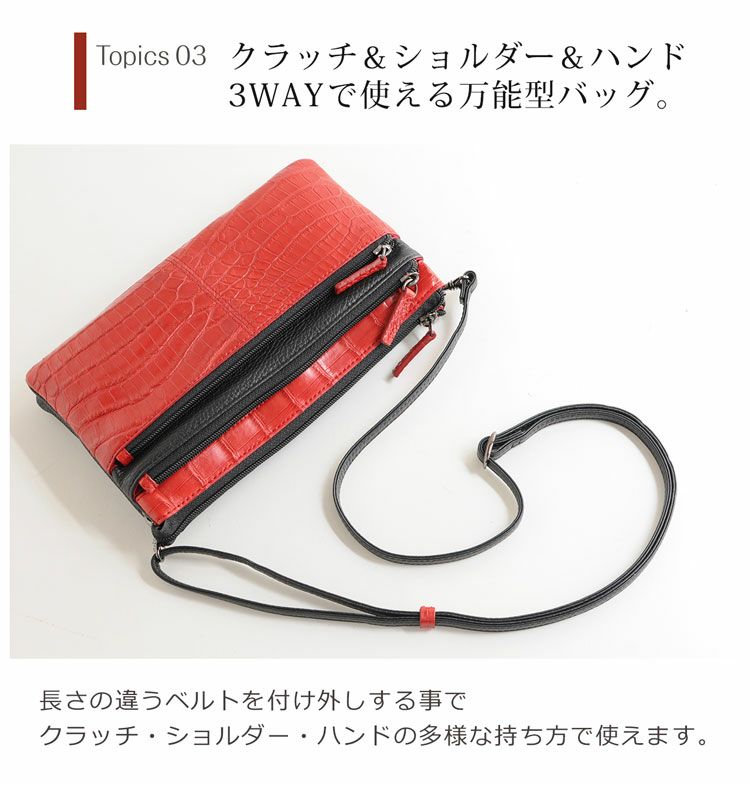 クロコダイルとイタリア製の牛革で仕立てた3WAYで使えるミニバッグ。