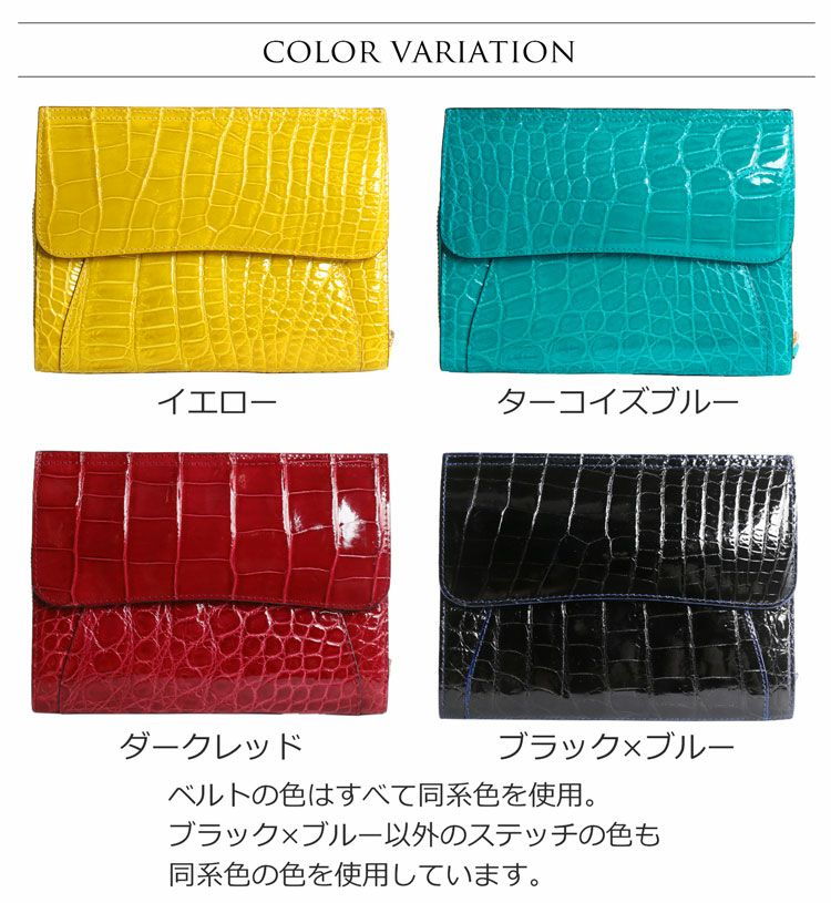 お財布ショルダー バッグ クロコダイル キャメル ワイン ダークグレー バイオレット ブラック