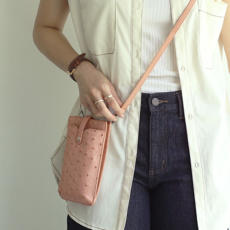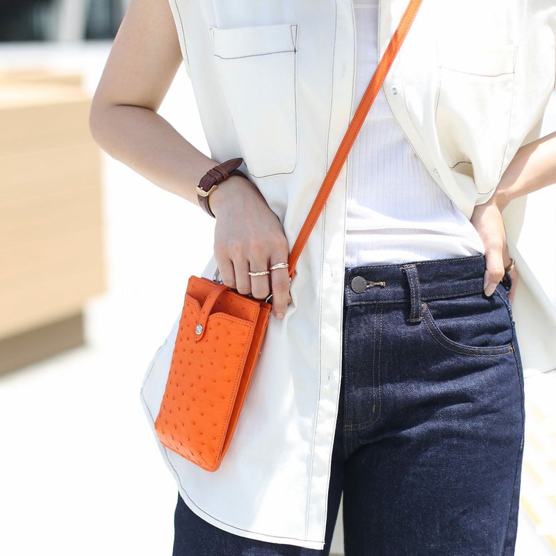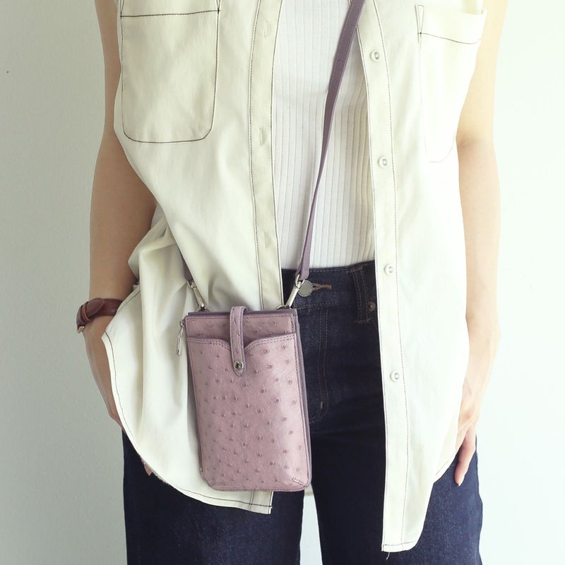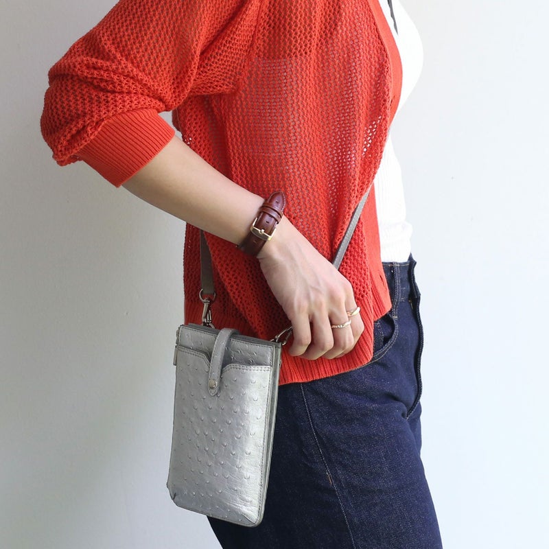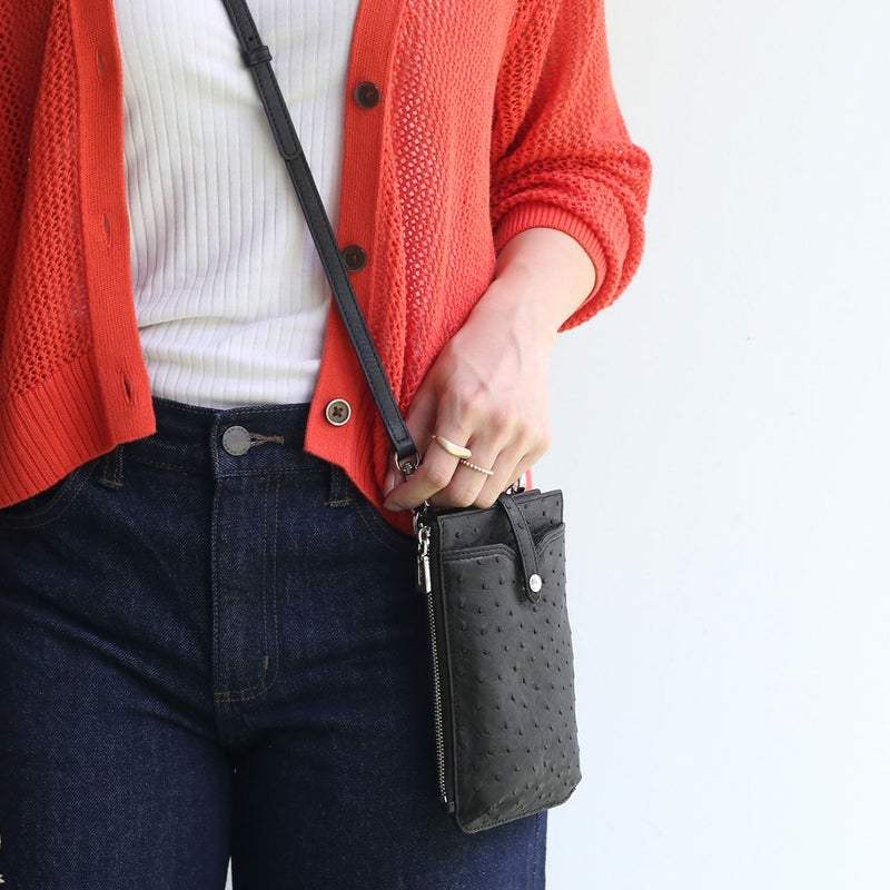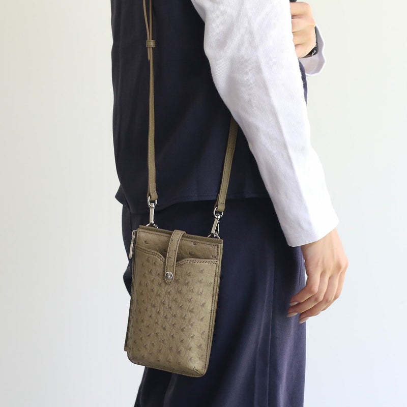 スマホショルダー バッグ 大人 かわいい 本革 オーストリッチ スマホポーチ レディース お財布バッグ お財布ショルダー スマホ スマートフォン ミニショルダー 縦 ポシェット 斜め掛け おしゃれ レザー 革 ギフト プレゼント