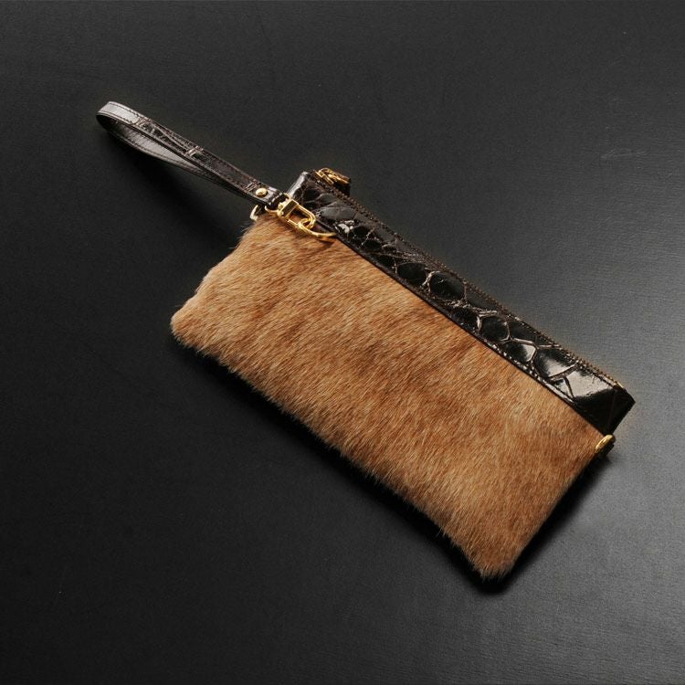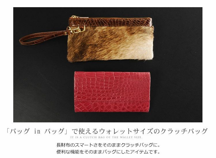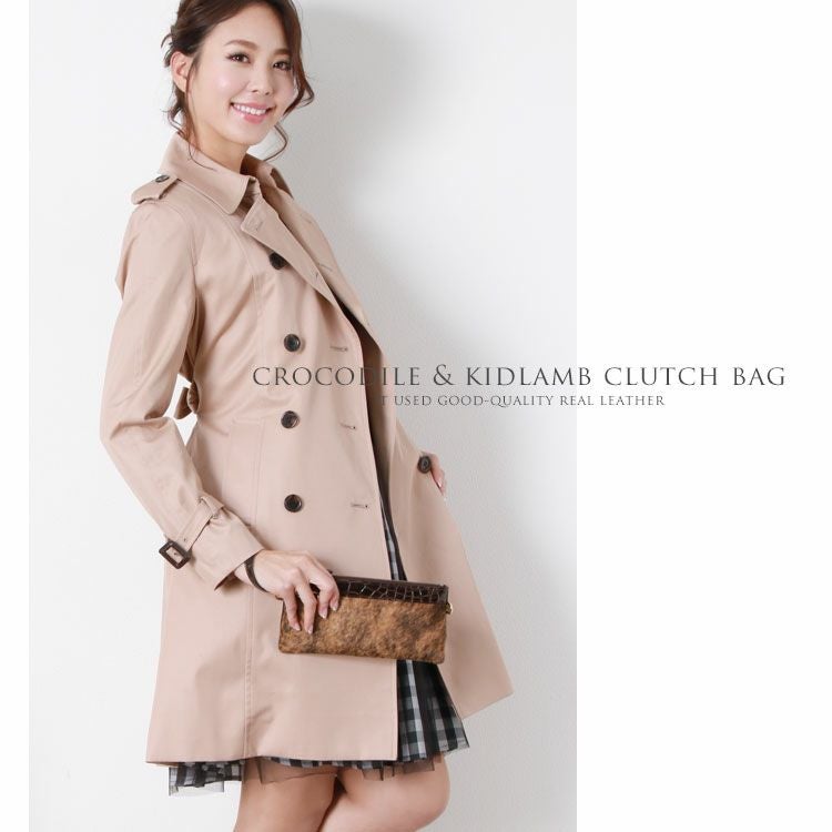 クロコダイル & キッドラム クラッチバッグ シャイニング加工 / レディース 本革 バッグ 4FA