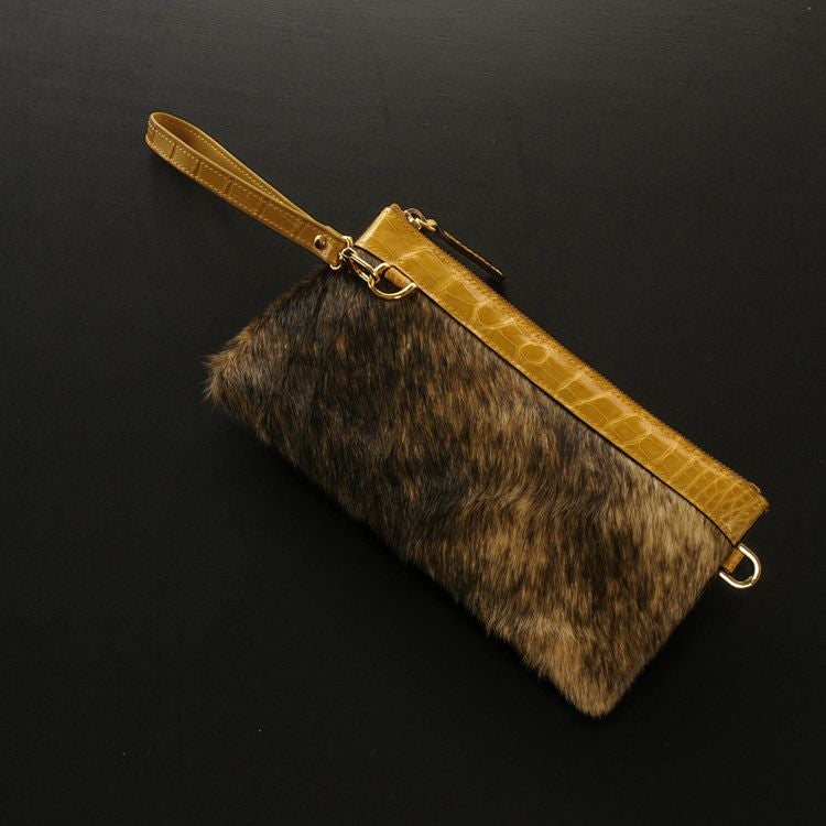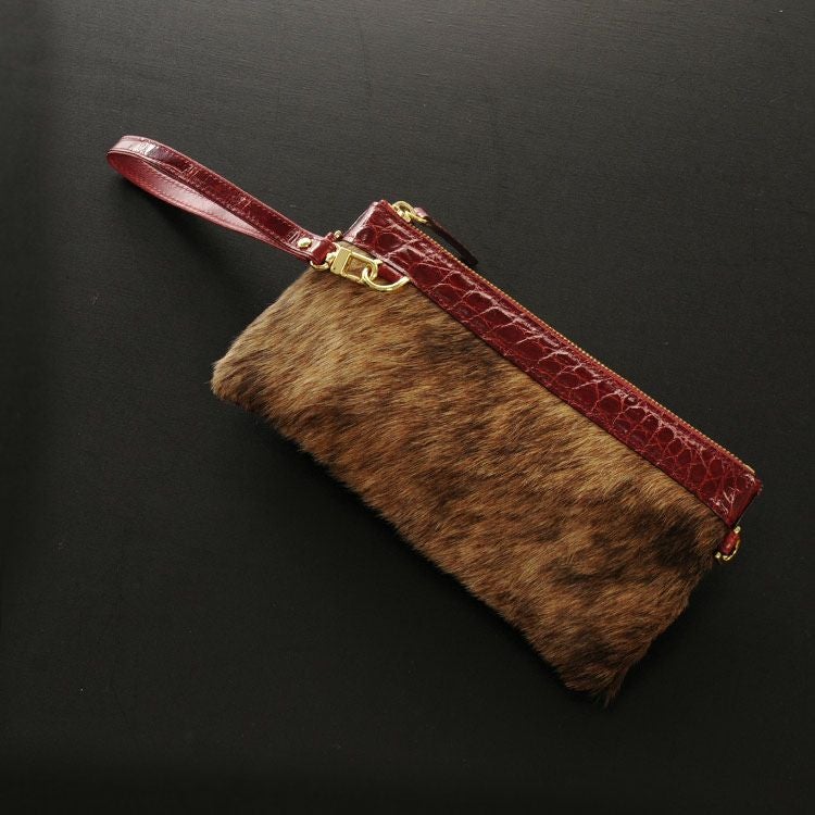 皮革と毛皮の贅沢コラボレーションが楽しめる可愛らしいクラッチバッグです。