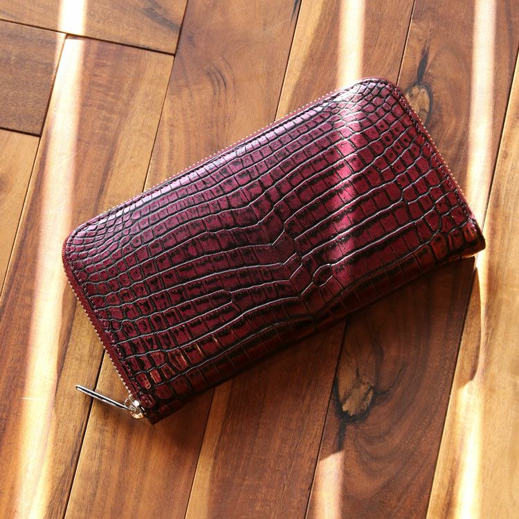 4. クロコダイル 長財布 センター取り 一枚革 ラウンドファスナー 日本製 変わり染め JRA 4FC