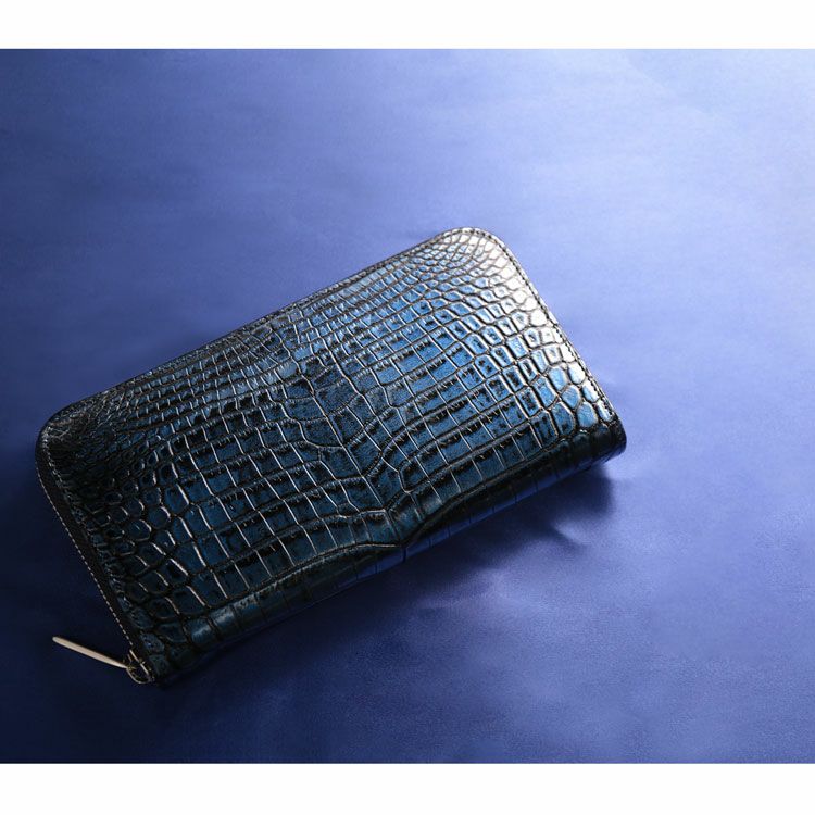 一枚のナイルクロコダイルを美しい色合いに染めて仕立てた長財布です。
