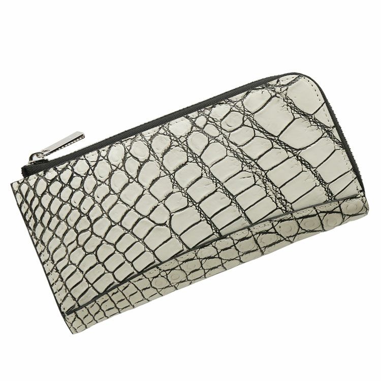クロコダイル 長財布 L字ファスナー 日本製 鰐革 アウトポケット付き シルバー金具 4FA