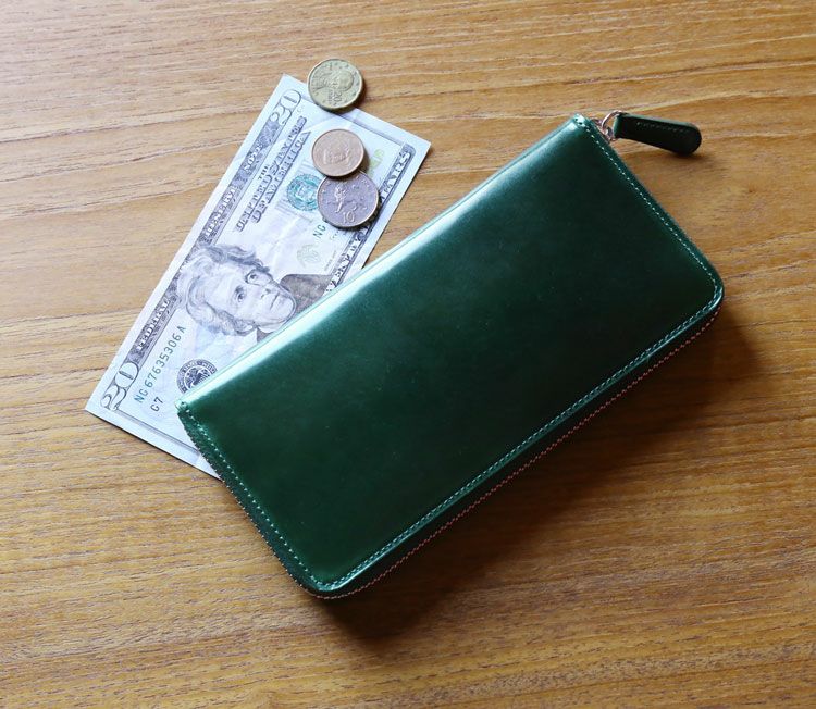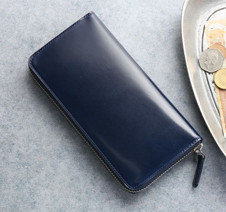 無駄な装飾の無いシンプルなデザインで、コードバンの素材感が生きた長財布です。