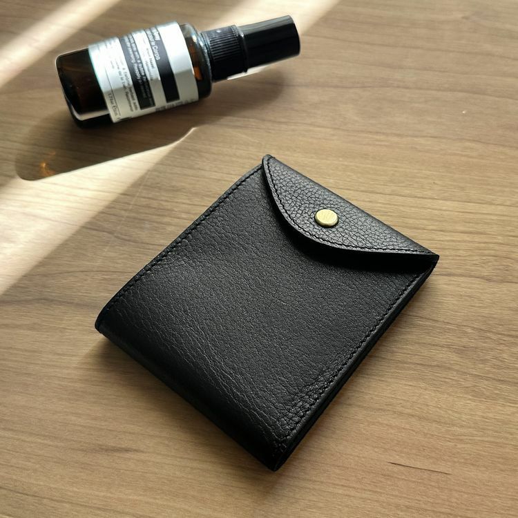 芯材などを使わず必要最低限な作りで実現した、厚み1cmの薄い財布。