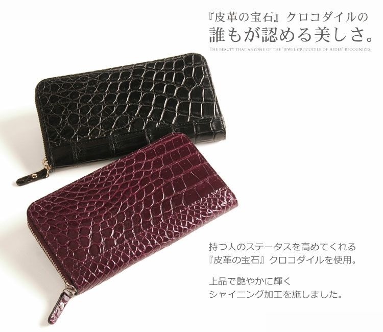 クロコダイル 長財布 ラウンド ファスナー シャイニング 加工 日本製 4FA