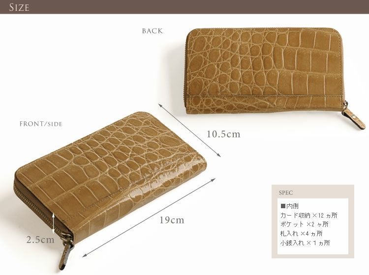 | 商品名:クロコダイル 長財布 ラウンド ファスナー シャイニング 加工 日本製 / レディース |