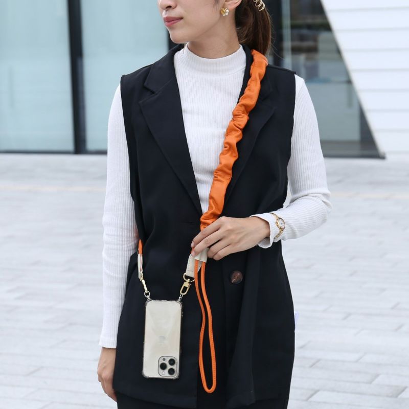 ※キーワード:スマホ用 スマートフォン用 ショルダーベルト 後付け 肩掛 斜め掛け 持ち歩き 携帯 おしゃれ レザー バイカラー 男女兼用 ユニセックス ギャザーショルダーバッグ フリル