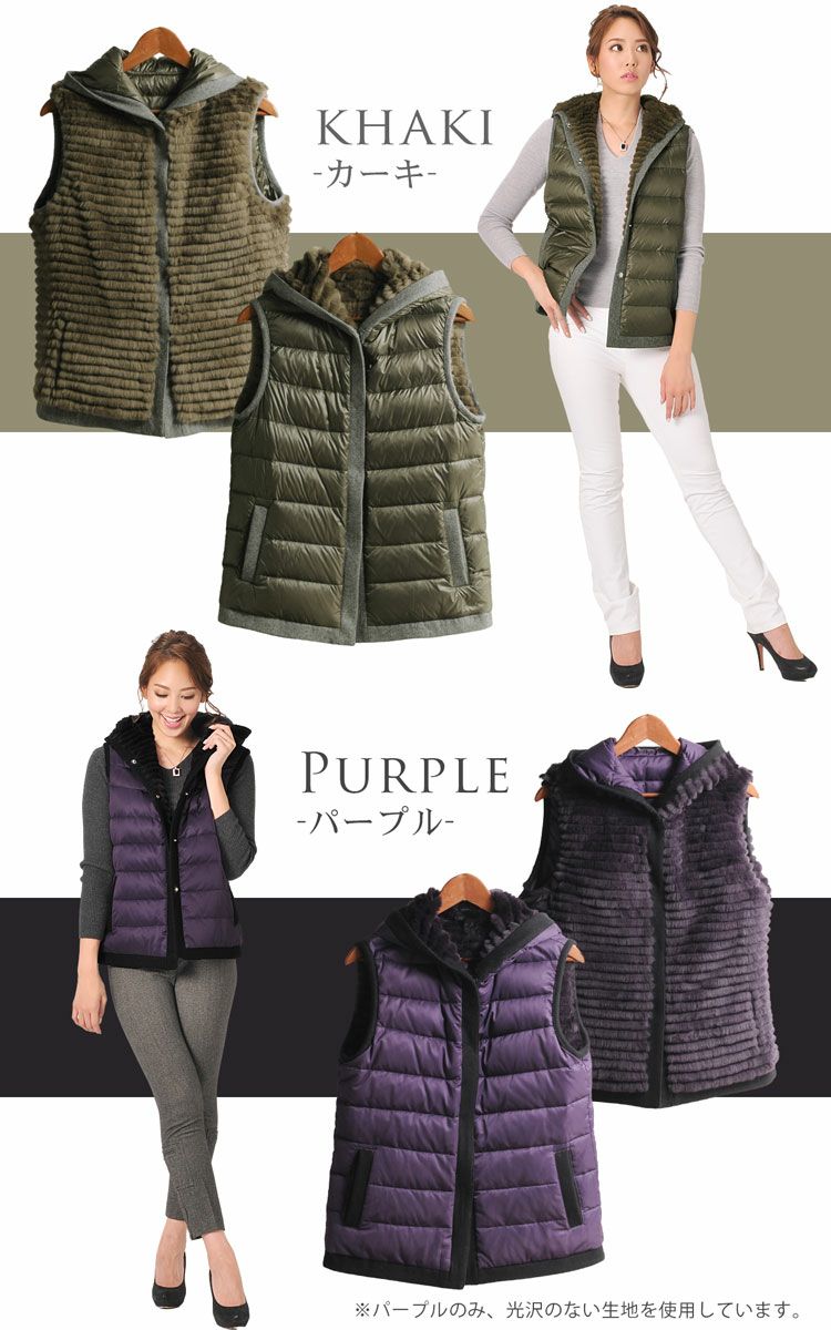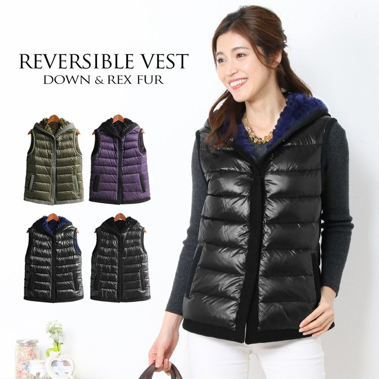 レッキス & ダウン ベスト リバーシブル フード付き/レディース 着丈64cm ファーベスト フード付きベス リバーシブルベスト 秋服 冬 アウター 上着 ミセス プレゼント ギフト 母 女性 ギフト