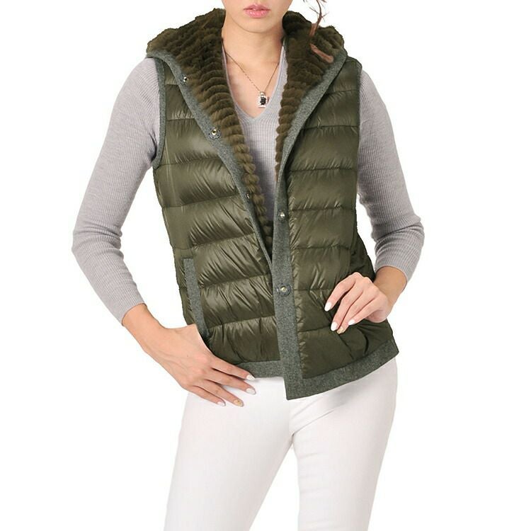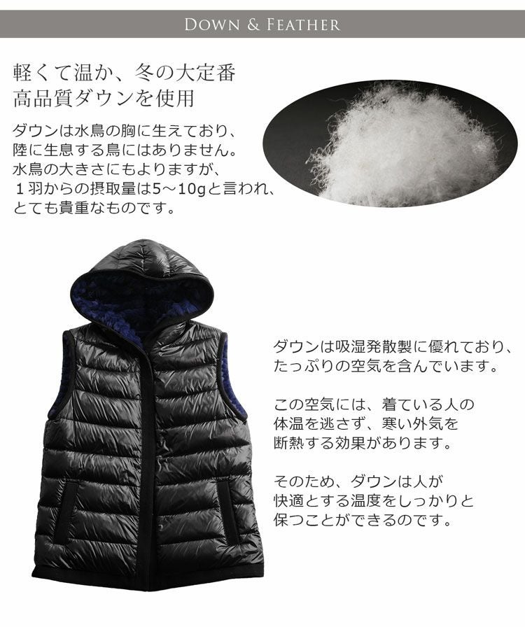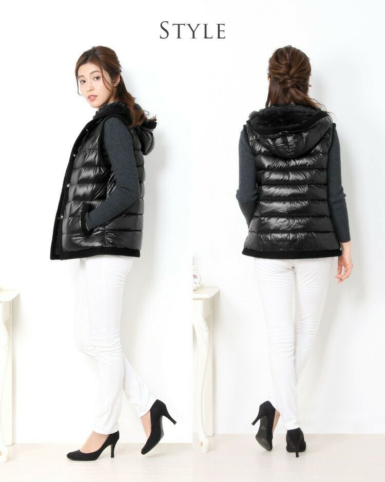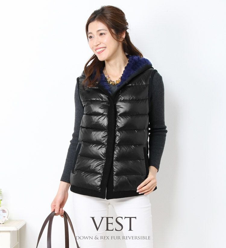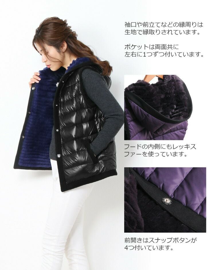 レッキス & ダウン ベスト リバーシブル フード付き レディース 着丈64cm 7F