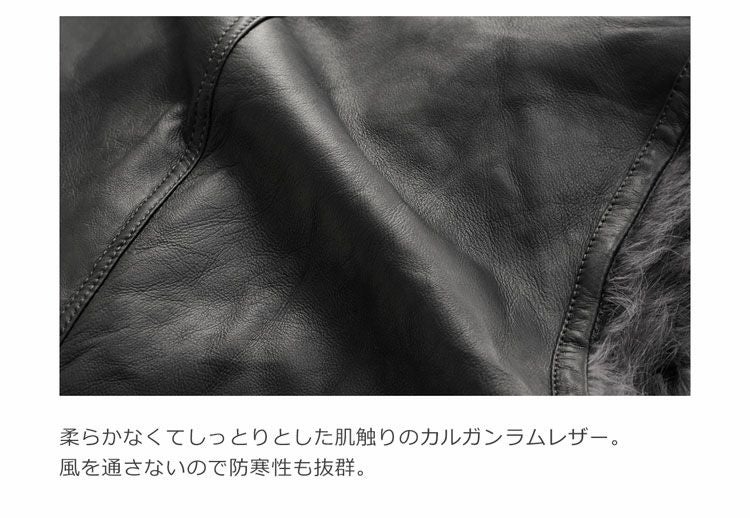 立体感のあるカルガンラムのファーとスッキリとした印象のレザーを使用し、
