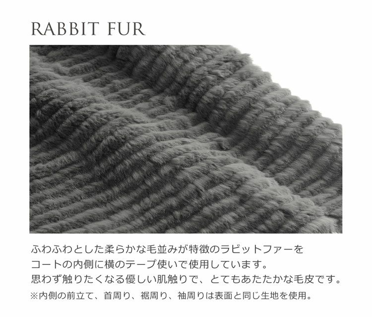 着丈90cmで内側にラビットファーをトリミングしたコートです。