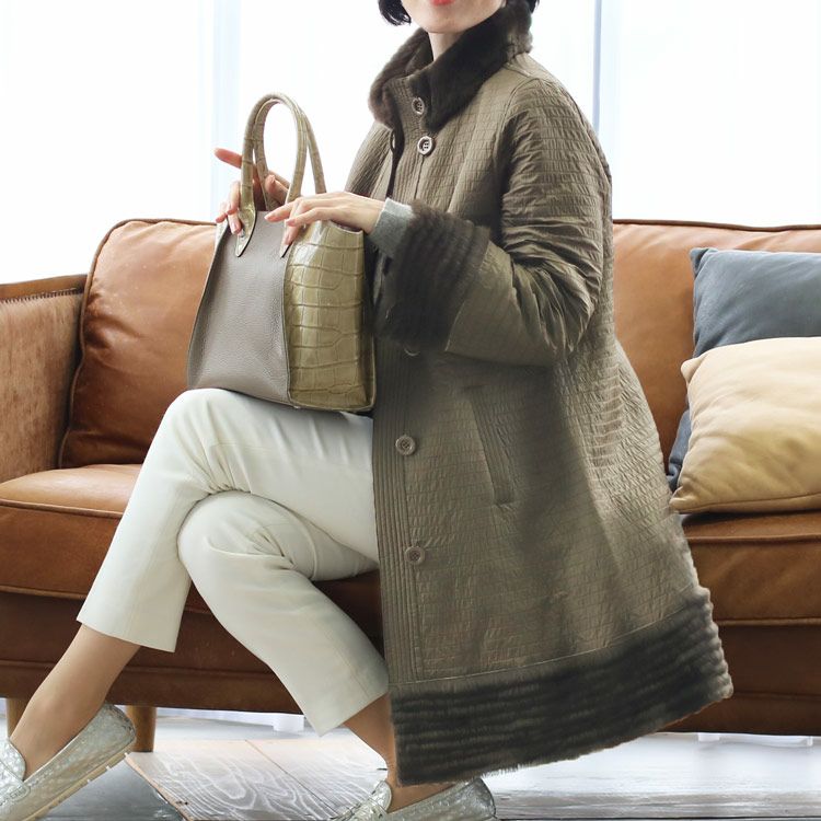首周りはレッキスファーを使用し、袖口と裾周りにもラビットを使っています。
