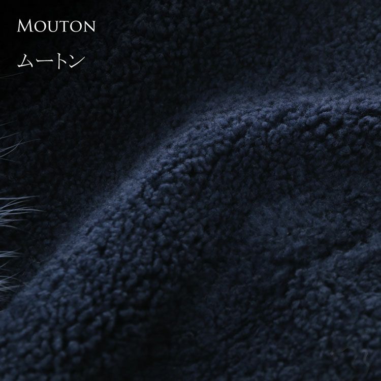 5. ムートン ダブルフェイス 7分袖 コート 袖ダウン 襟チャイニーズラクーン レディース ネイビー/ブラック (01000910r) 7F