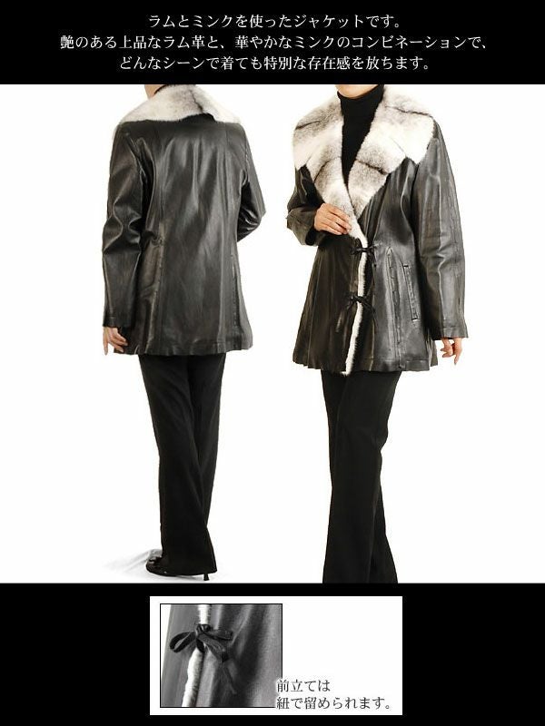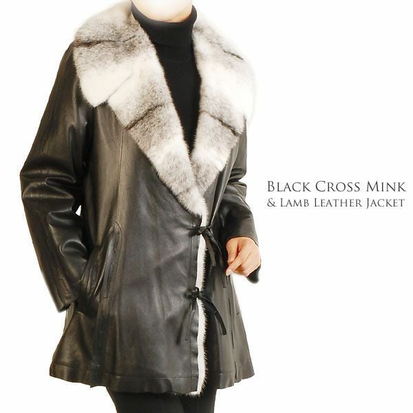 ラムレザージャケット ブラッククロスミンク トリミング プリント ラビット ファーライナー ファージャケット 革 アウター 秋 冬 プレゼント ギフト