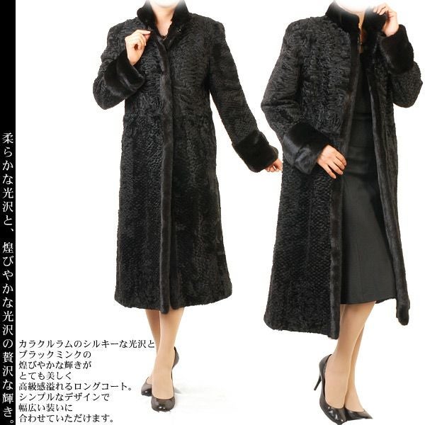 カラクルラム ロング ファーコート ブラックミンクトリミング 7F
