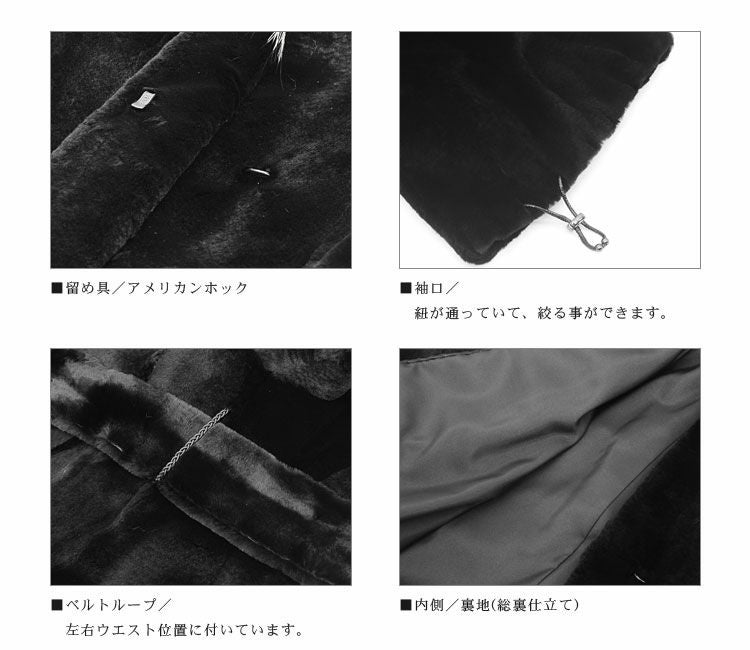 | 素材 | 表側 : ウィーゼル、フォックス 裏地 : ポリエステル100% |