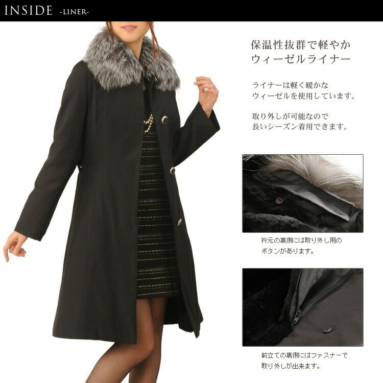 シルク&ウィーゼル ライナーコート シルバーフォックス衿付き(No.104178) |