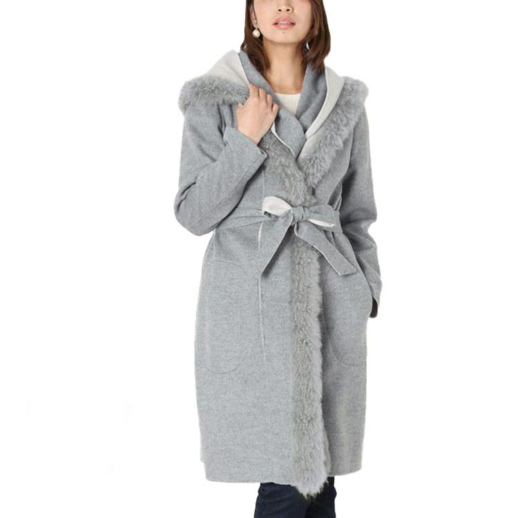 ウール カシミヤ ファー フード付き コート レディース 春/秋冬 全2色(各サイズ1点限り) 7F
