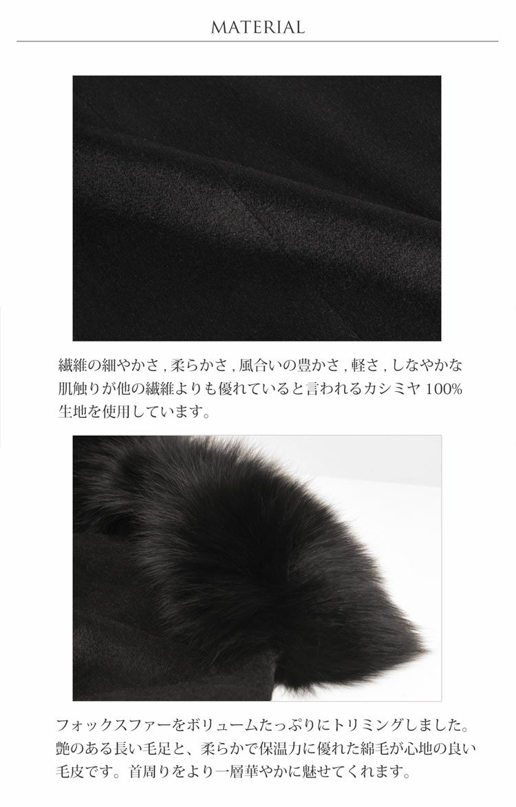 | 素材 | コート 表地:カシミヤ100% 裏地:ポリエステル100% 毛皮:フォックス ライナー 表地:ポリエステル100% 裏地:ポリエステル100% 詰物:ダウン80%フェザー20% |