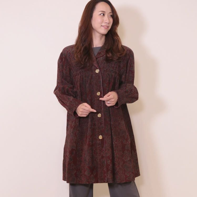 | 商品名:ピッグスキンコート ギャザーデザイン プリント加工 (2270-236r) |