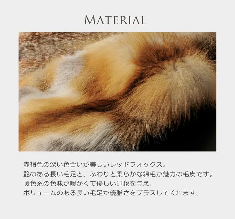 | 素材 | 毛皮:レッドフォックス 裏地:ポリエステル100%(裏地) |