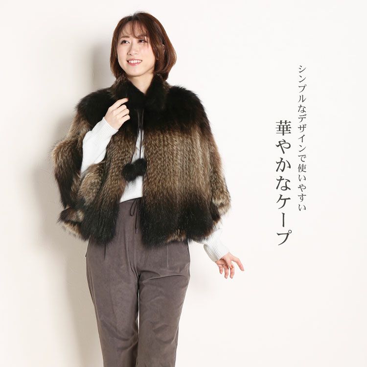 | 商品名:アメリカンラクーン 編み込み ケープ ボンボン付 レディース |