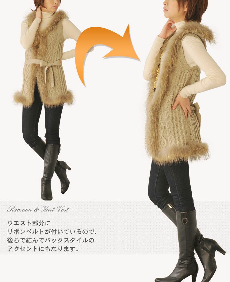 | 商品名:ラクーン&ニット ロングベスト |