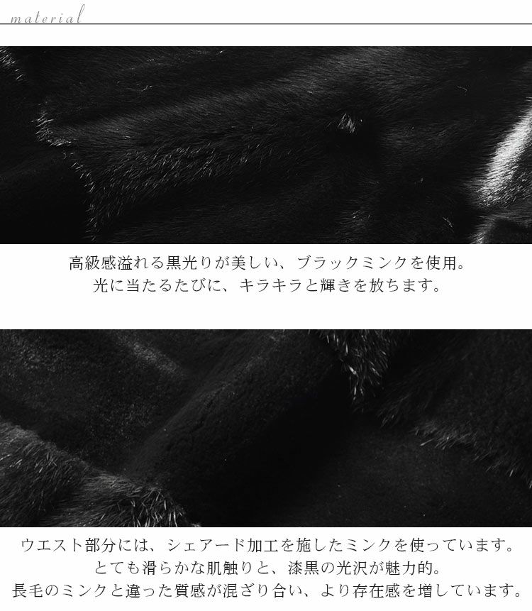 他の画像を見る 29%OFFクーポンSALE ミンク コート シェアード加工 スワカラ トリミング ロング 着丈90cm ブラック / レディース 7F ¥ 605,000 税込 (0件) お気に入りに登録する