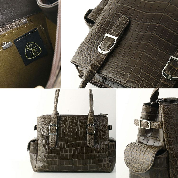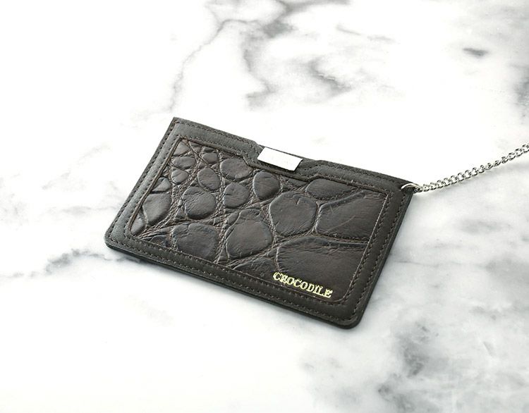 【1点限り】【アウトレット】クロコダイル バッグ センター取り 日本製 JRA パスケース カード入れ 付き ダークブラウン (6100-240r)