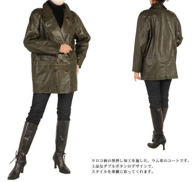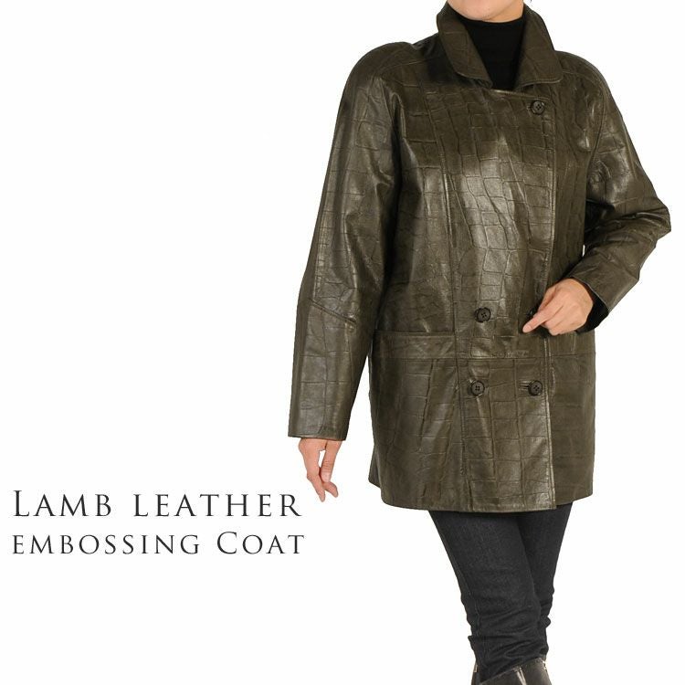 残り在庫わずか!【1点限り】 ラム コート クロコダイル型押し 7F