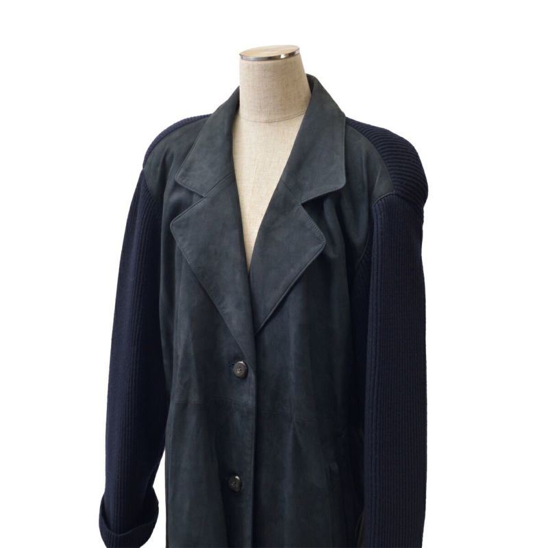 【訳あり】ラム スエード & ニット コート 皮革 レザー 7F