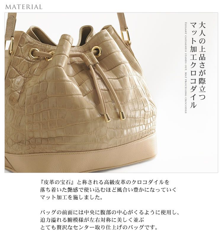 他の画像を見る exotic leather クロコダイル 巾着 バッグ / マット加工 ショルダー レディース 『クロコダイル保証書付き』 4FA ¥ 96,800 税込 (0件) お気に入りに登録する
