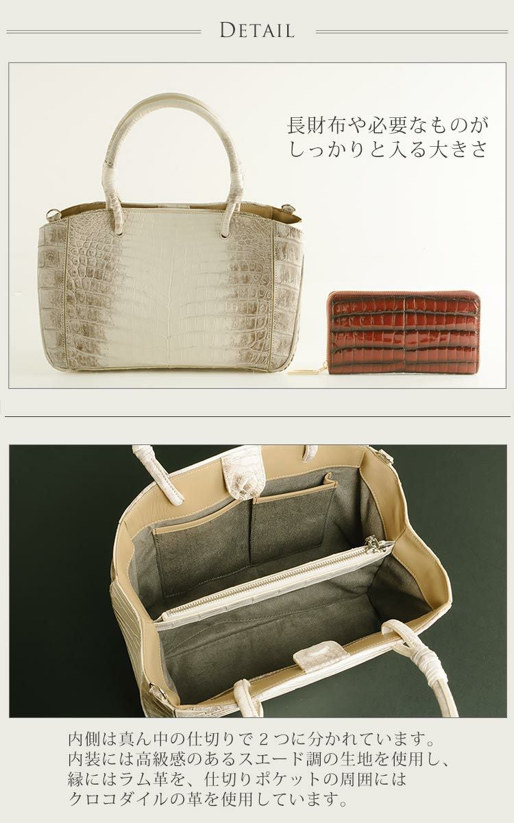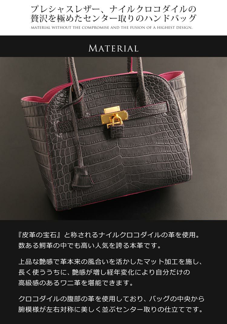 他の画像を見る exotic leather クロコダイル ハンドバッグ レディース マット 両面 センター取り 2WAY バッグ『クロコダイル保証書付き』 4FA ¥ 187,000 税込 (0件) お気に入りに登録する