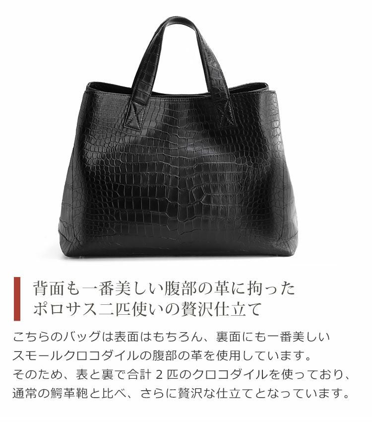 他の画像を見る exotic leather ヒマラヤクロコダイル ポロサス 2way トートバッグ 結び手 日本製 ハンドル 2WAY『クロコダイル保証書付き』 4FA ¥ 209,000 税込 4.00 (1件) お気に入りに登録する
