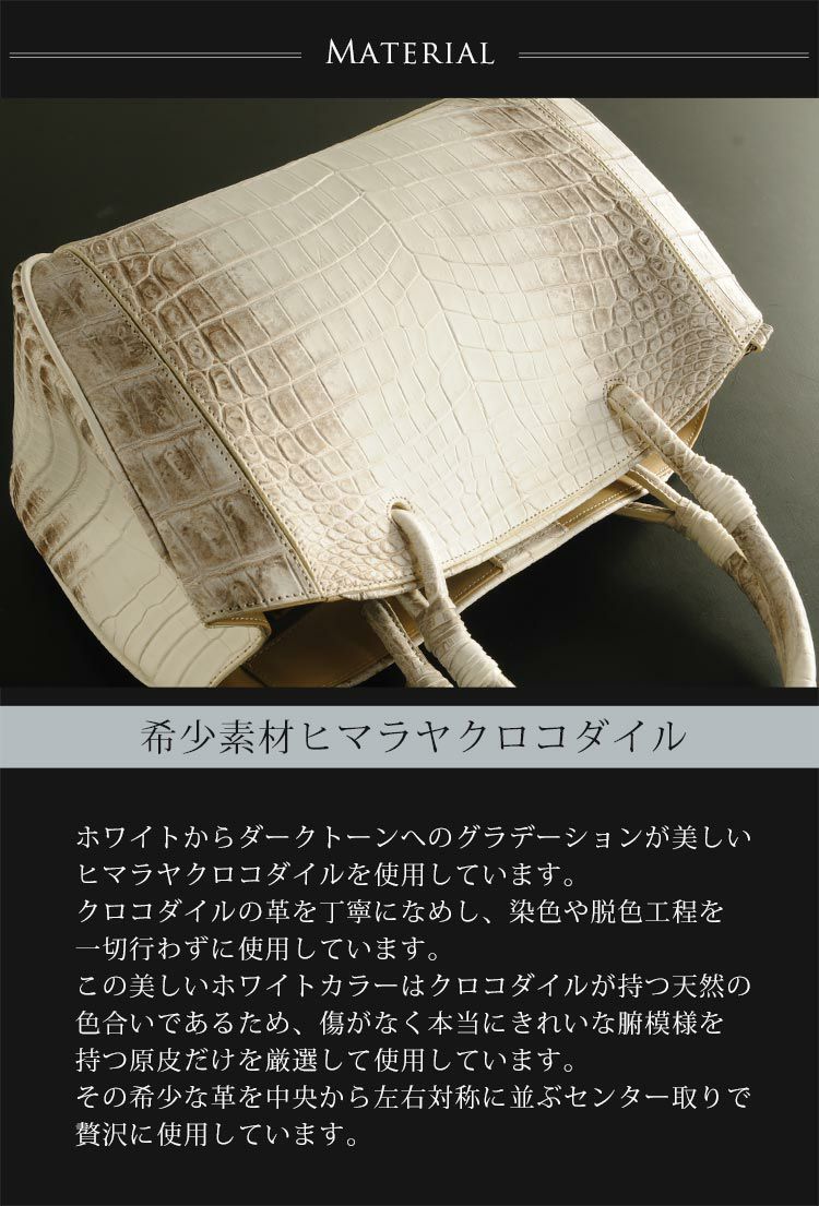 他の画像を見る exotic leather ヒマラヤ クロコダイル トートバッグ 2WAY 日本製 センター取り レディース『クロコダイル保証書付き』 4FA ¥ 308,000 税込 (0件) お気に入りに登録する