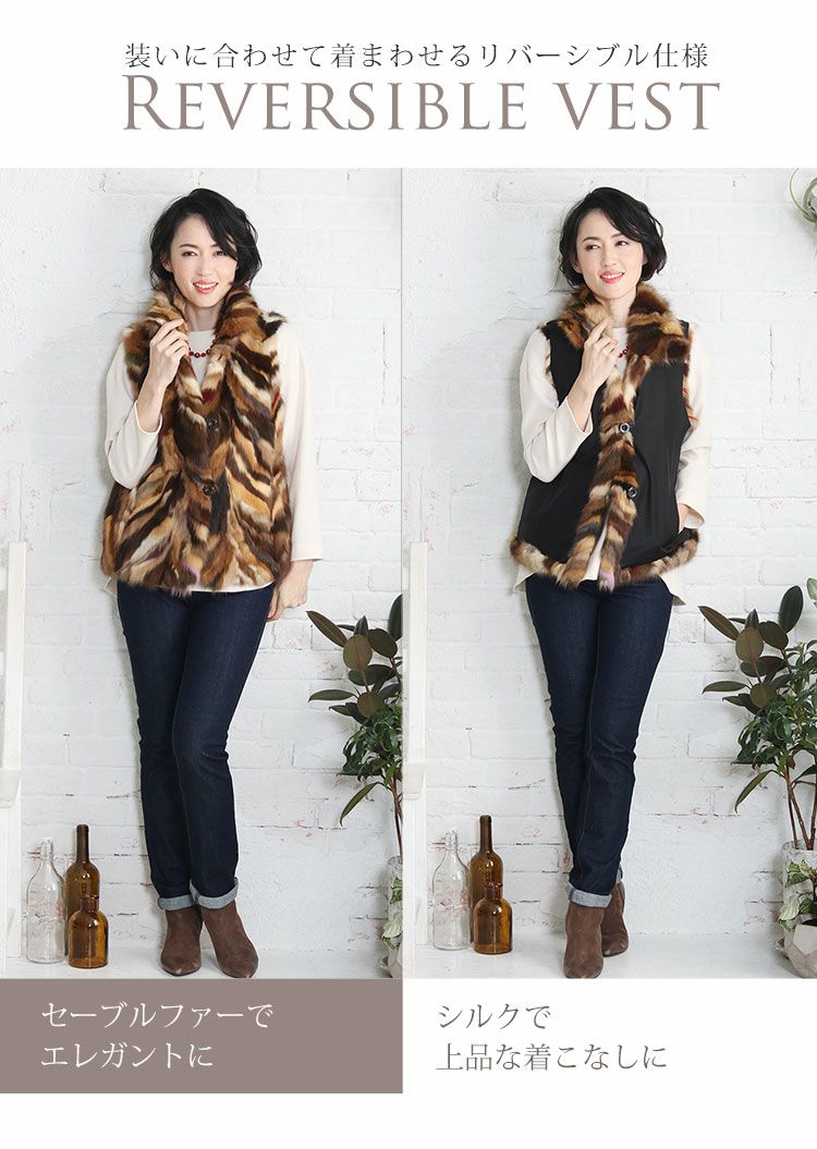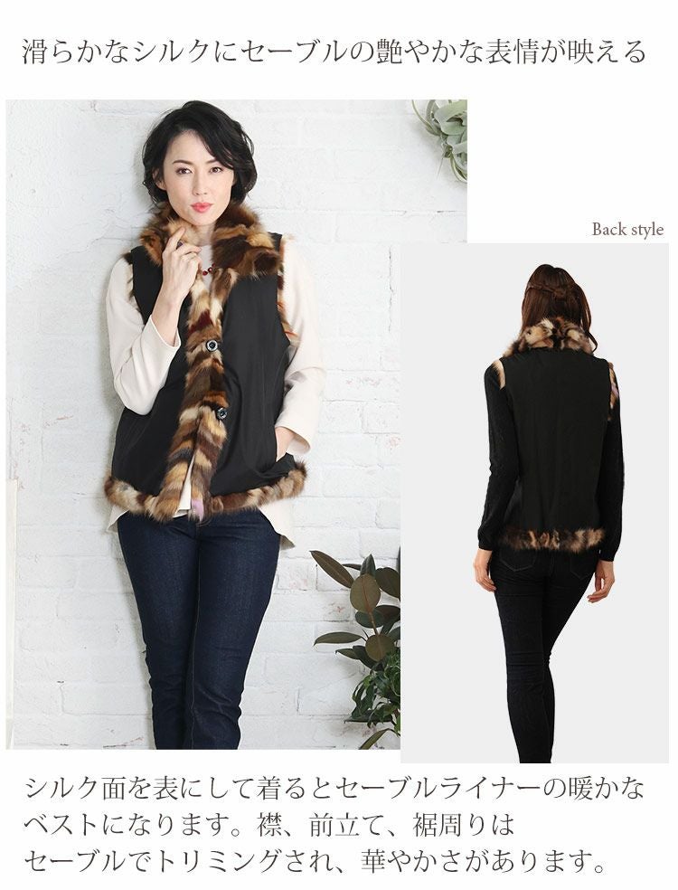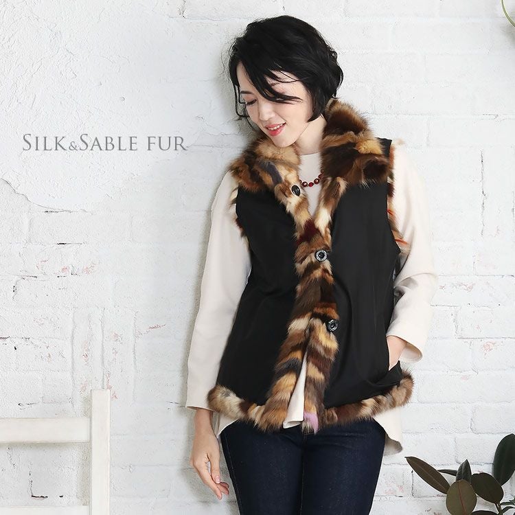 他の画像を見る 39%OFFクーポンSALE 毛皮 ファー セーブル & シルク ベスト リバーシブル レディース ダークブラウン/ブラック L/2L 7F ¥ 140,800 税込 (0件) お気に入りに登録する