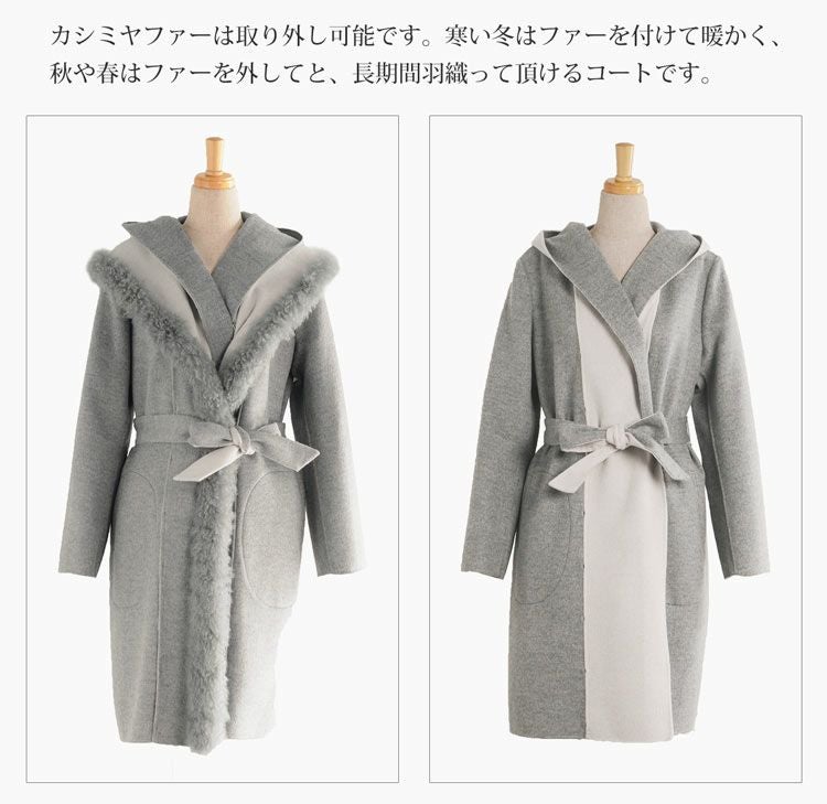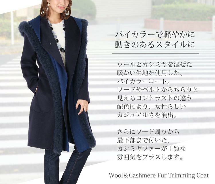 他の画像を見る 39%OFFクーポンSALE ウール カシミヤ ファー フード付き コート レディース 春/秋冬 全2色(各サイズ1点限り) 7F ¥ 80,300 税込 (0件) お気に入りに登録する