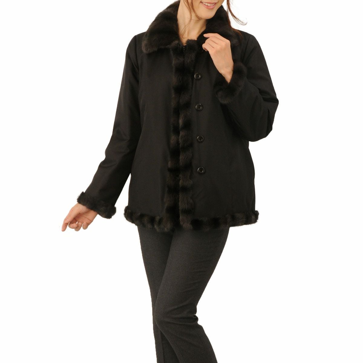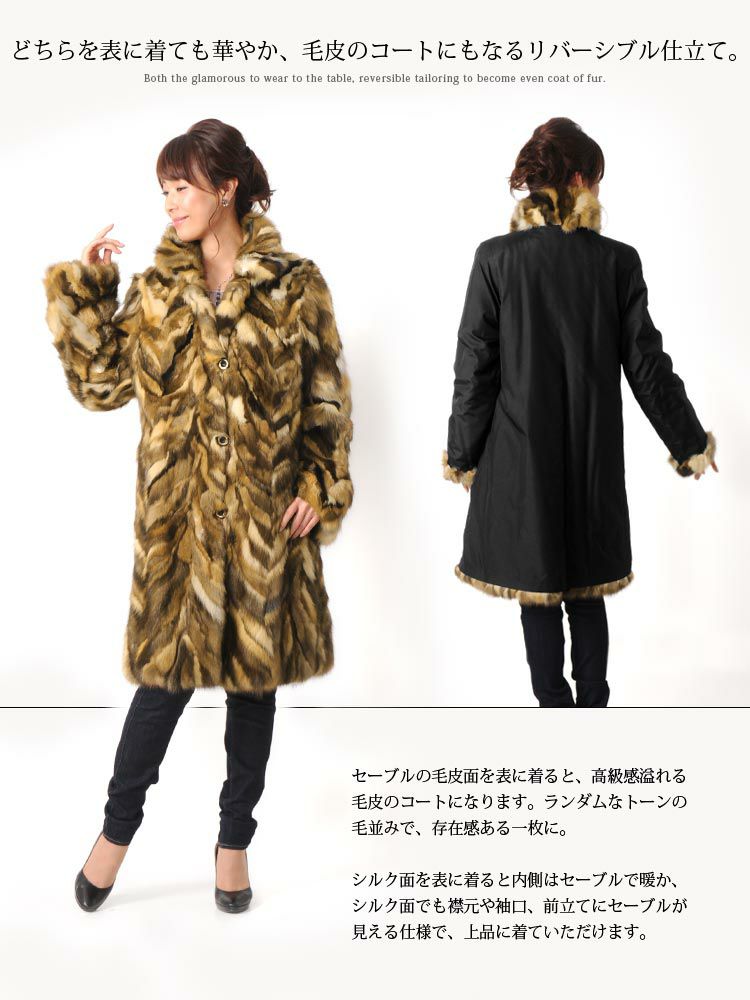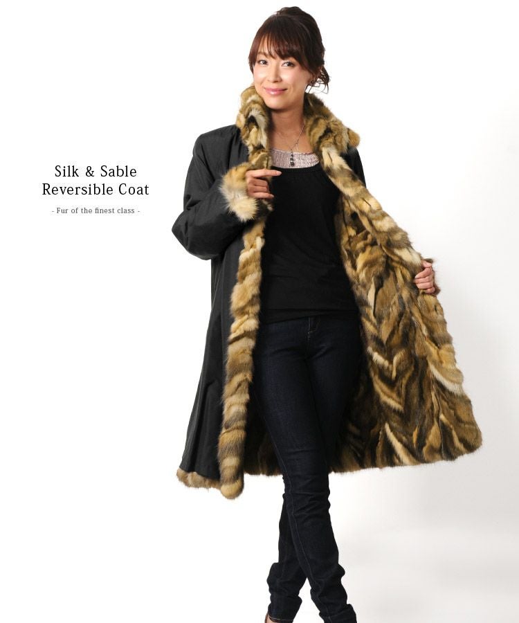 セーブル & シルク100% リバーシブル コート 着丈94cm / レディース 7F
