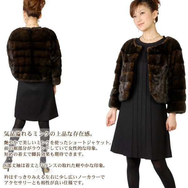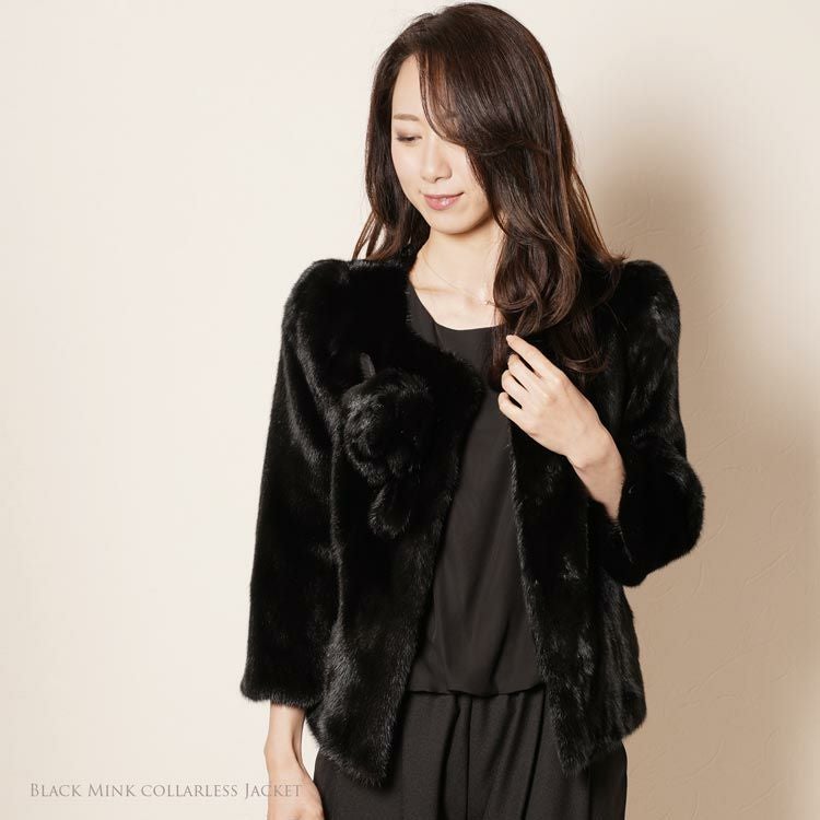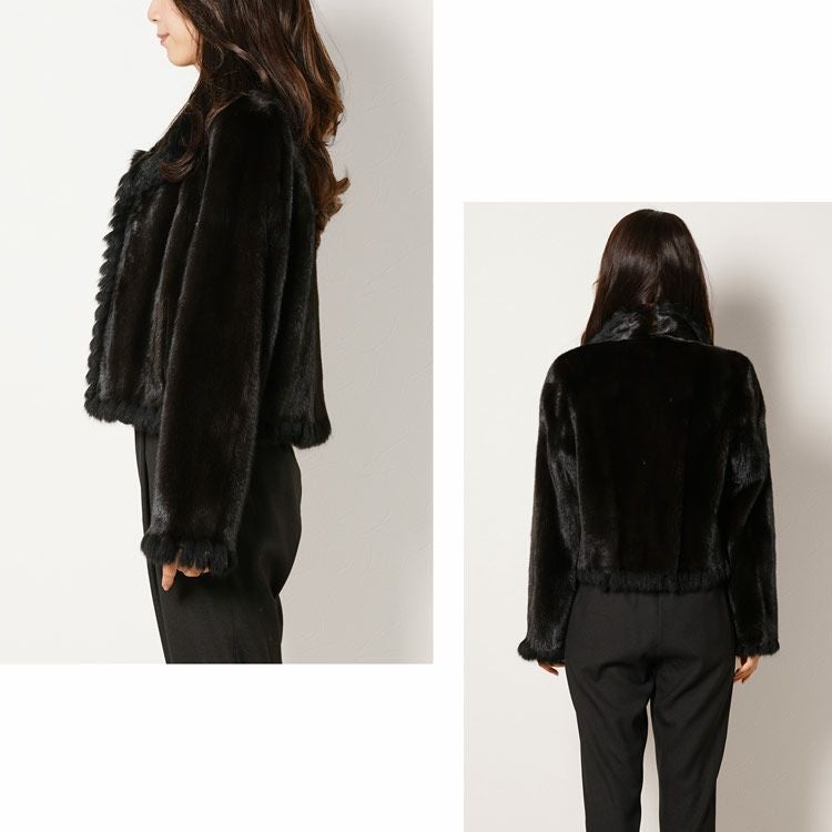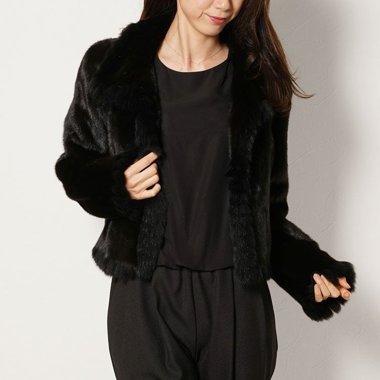 ブラック ミンク ノーカラー ジャケット レディース (01000202r) 7F