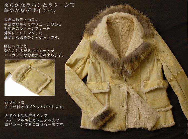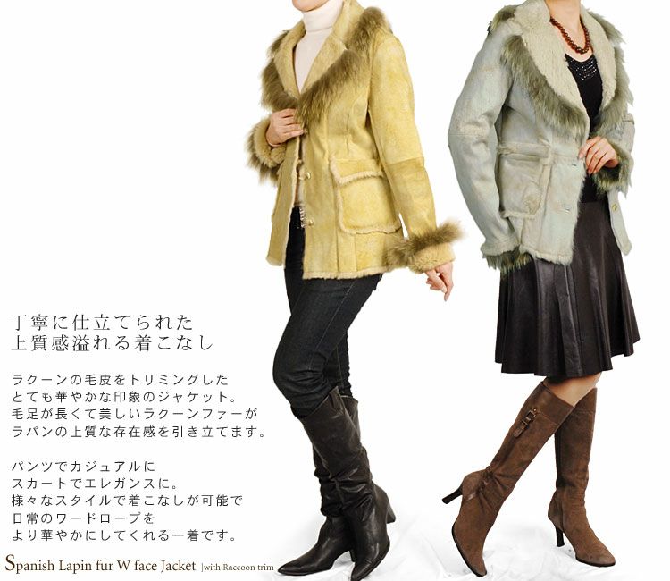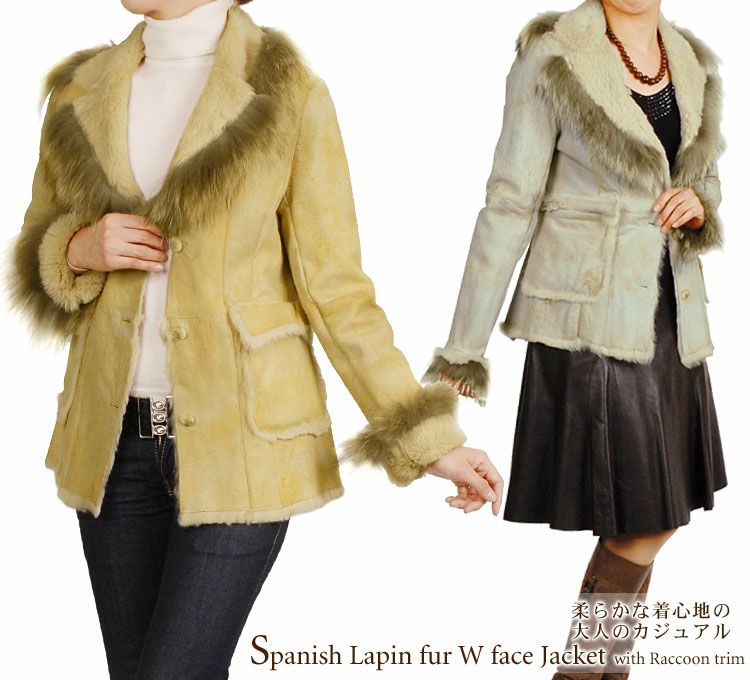スパニッシュラビットファーWフェイスジャケット ラクーントリミング 6F