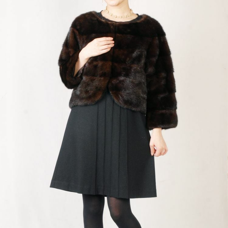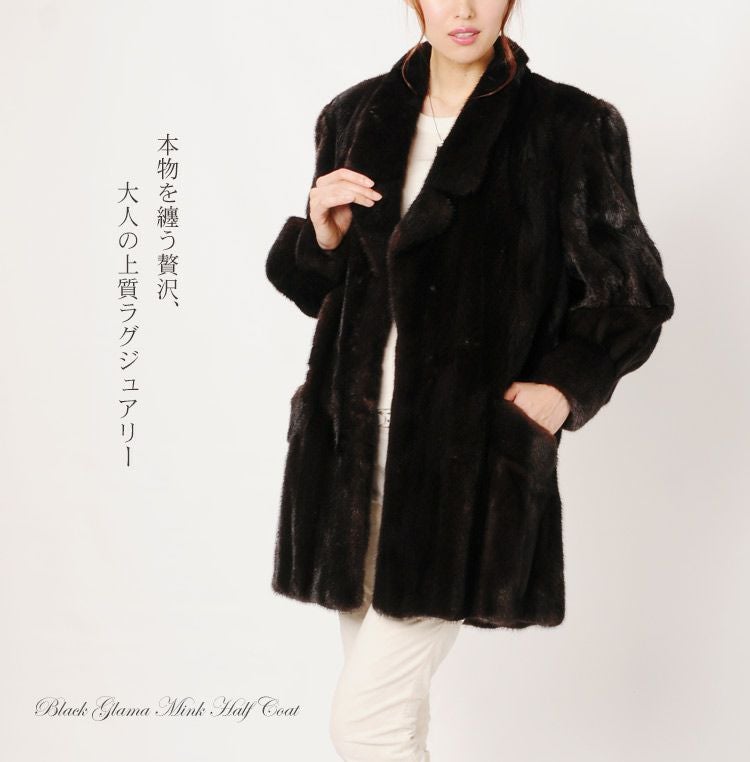 ブラックグラマミンク ハーフコート テーラーカラー 7F
