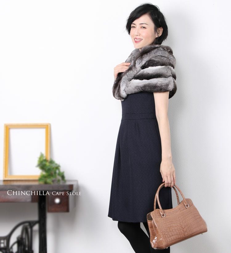 ナチュラル チンチラ ファー ケープ レディース 7F