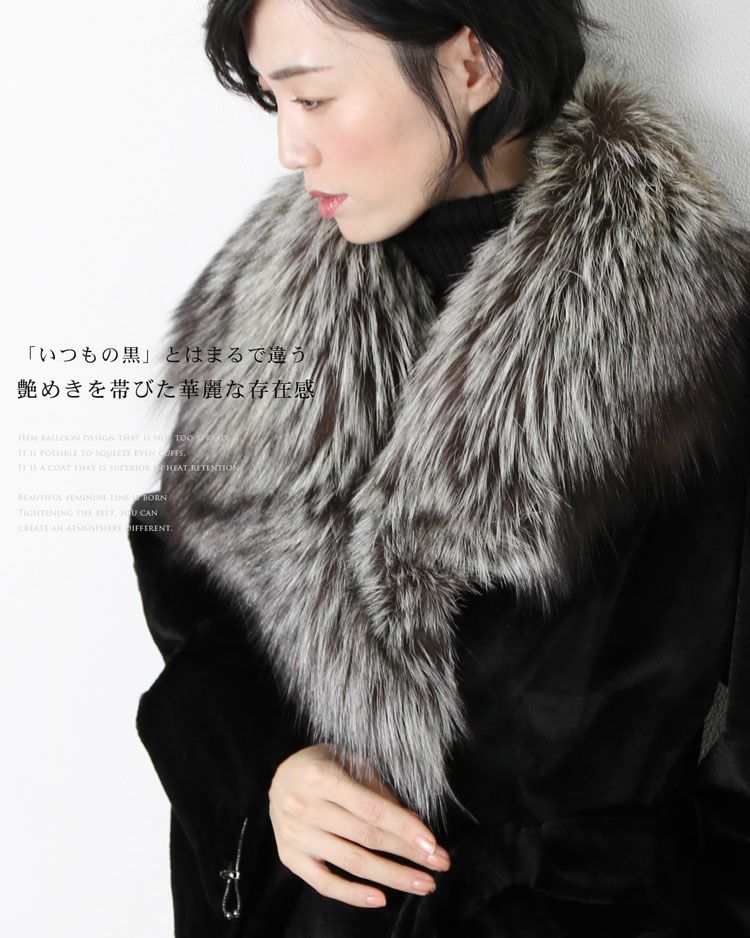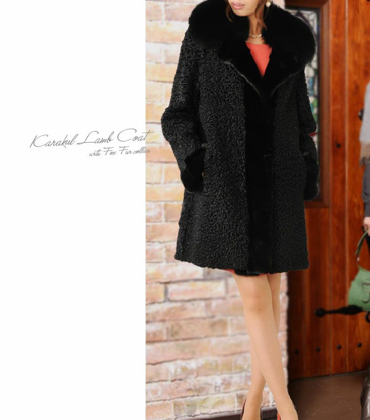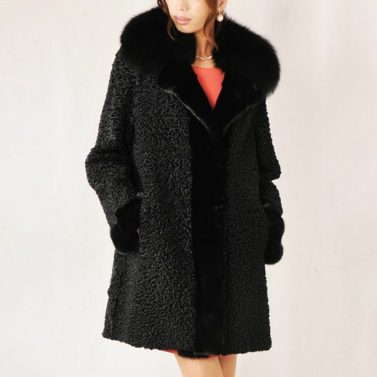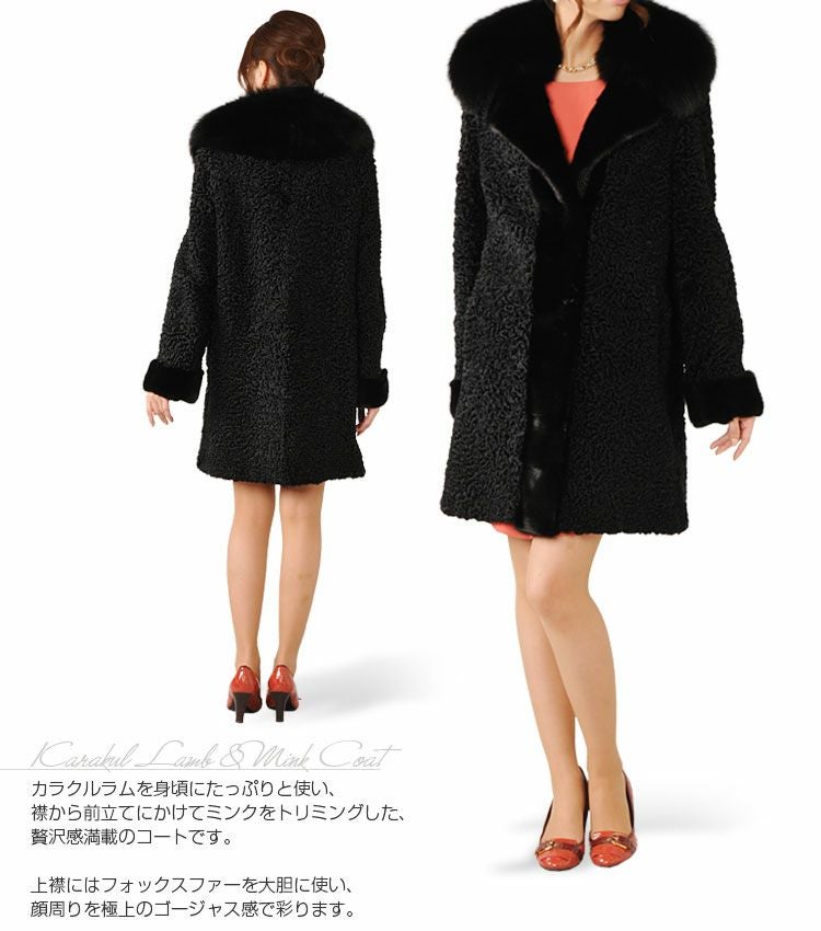 ファー カラクルラム コート フォックス&ミンク トリミング 7F