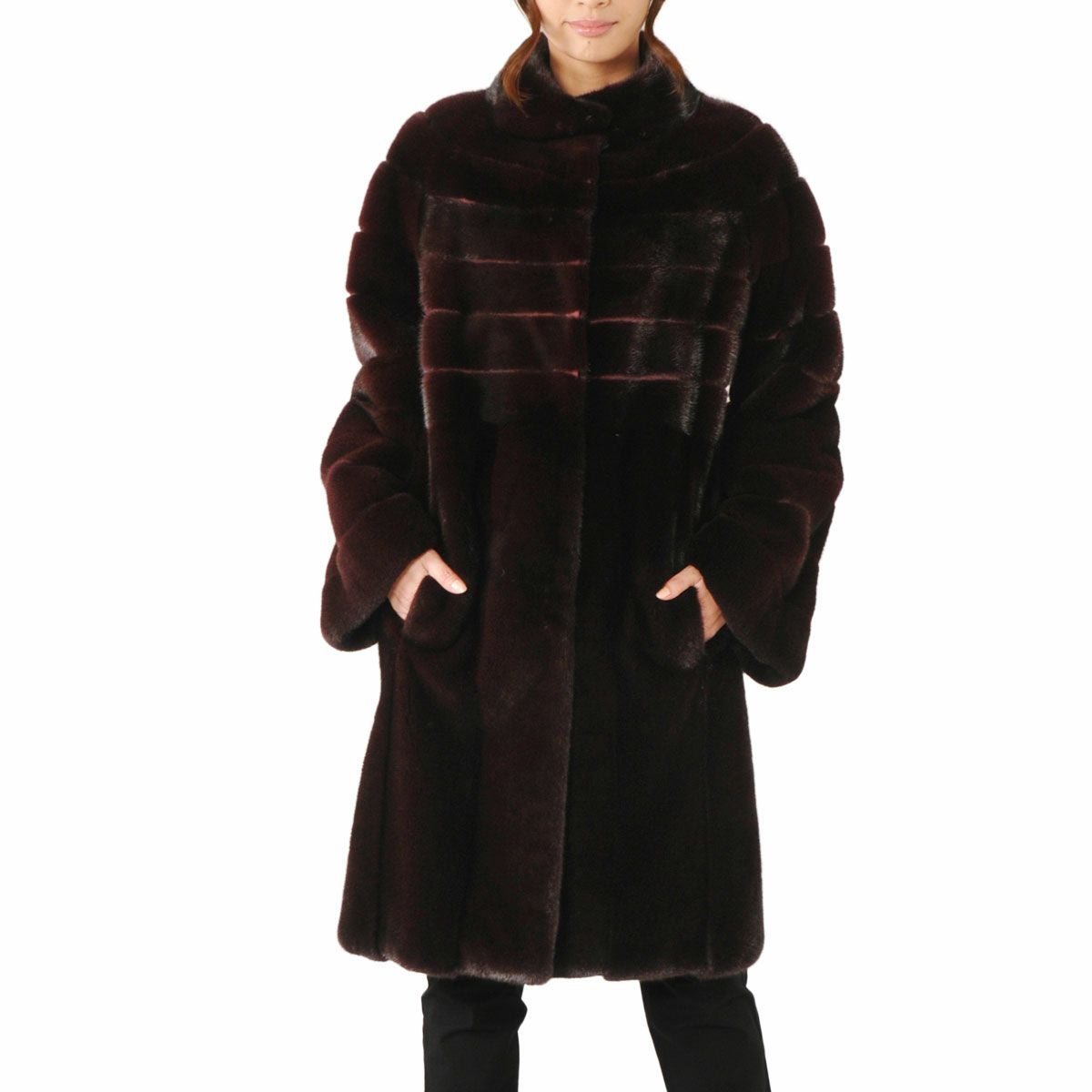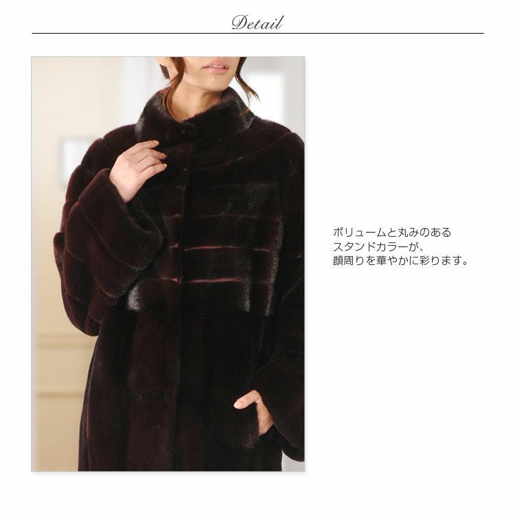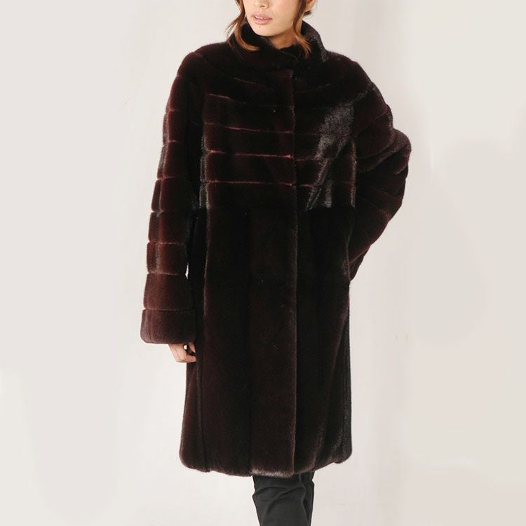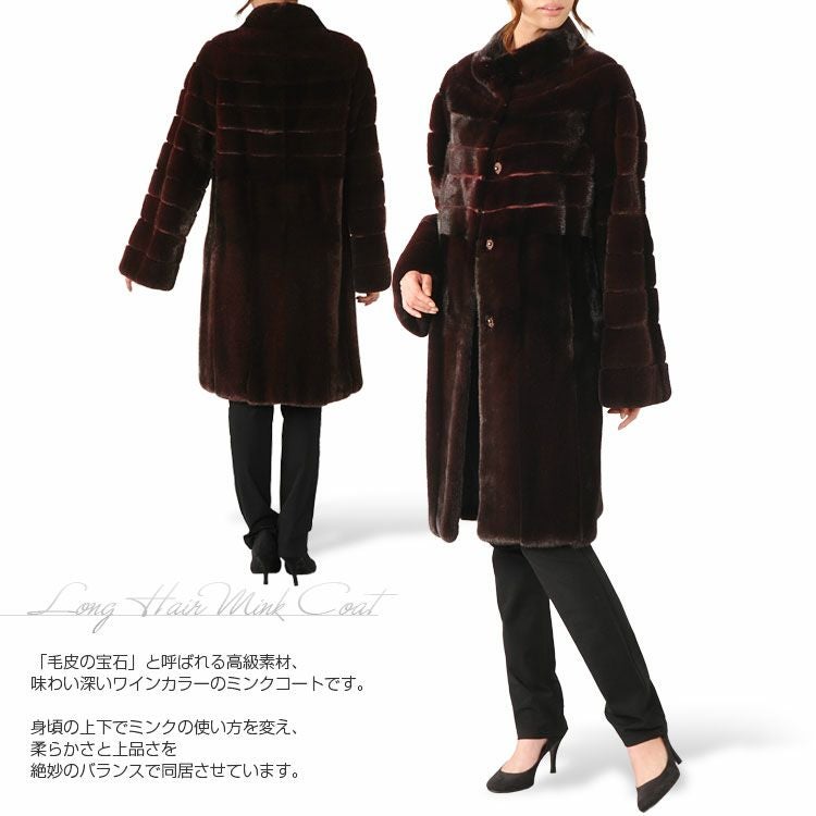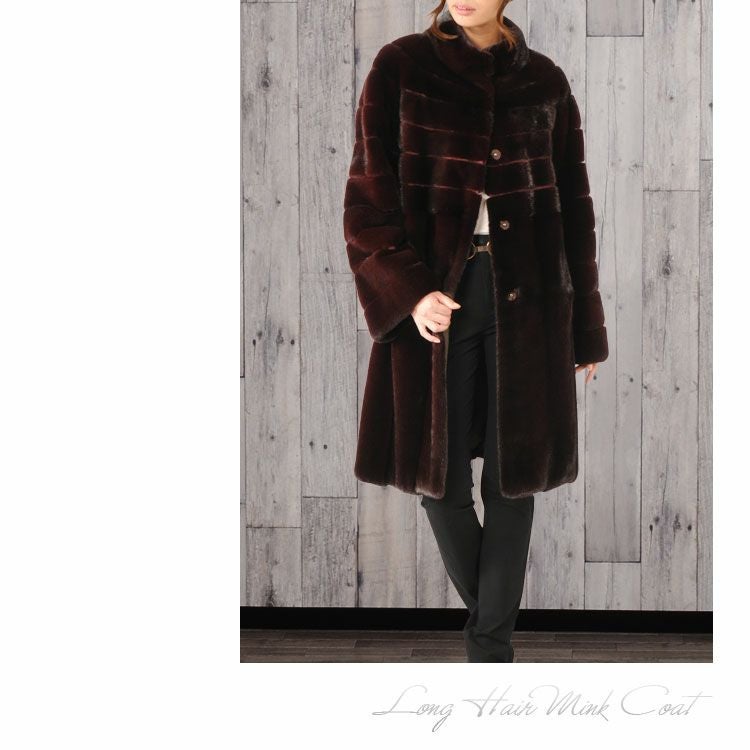 ファー ロングヘアー ミンク ロングコート ワインレッド 7F