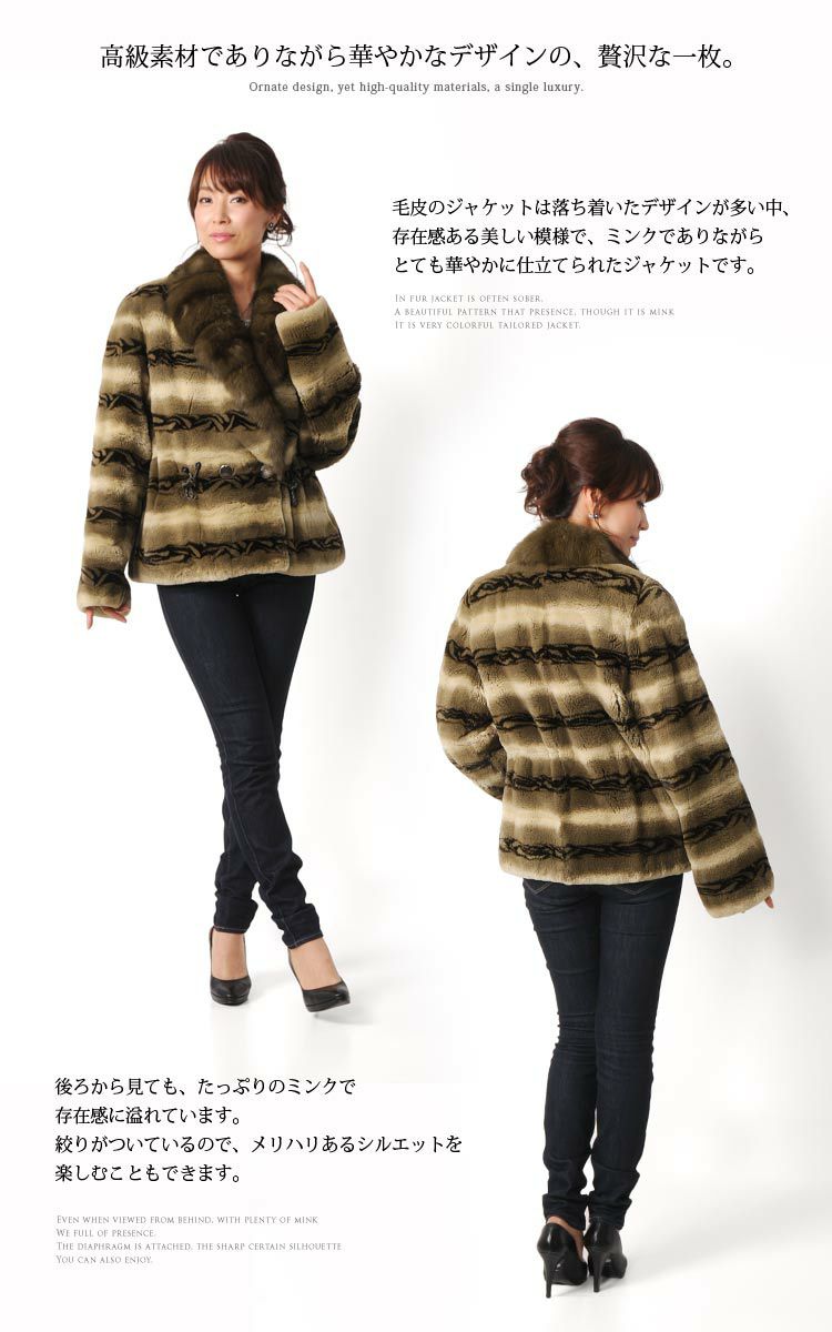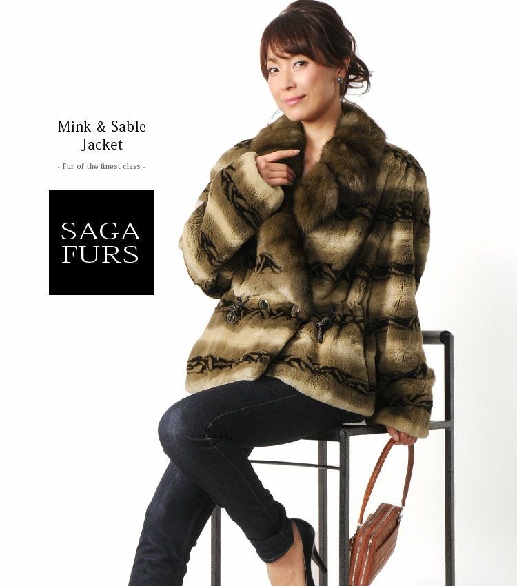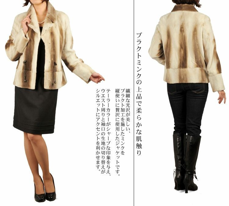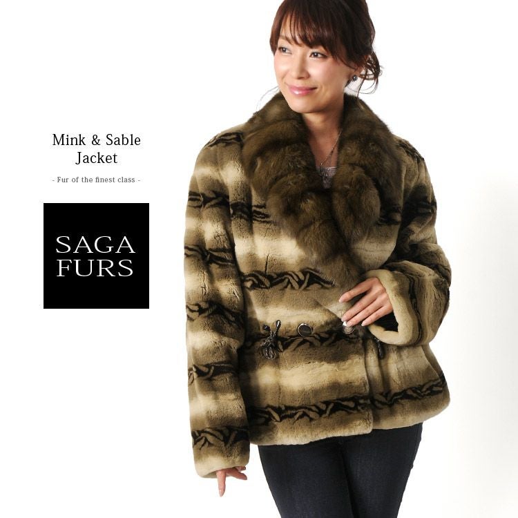 プラクト ミンク ジャケット ロシアンセーブル ファーカラー プリント柄 / レディース 7F