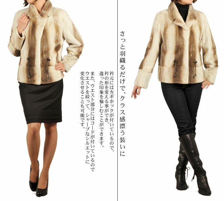 ハーフシェアード ミンク ジャケット マーテン襟 レディース 7F