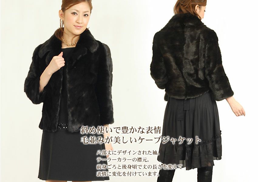 スカンブラック ミンク ジャケット リボンデザイン 7F