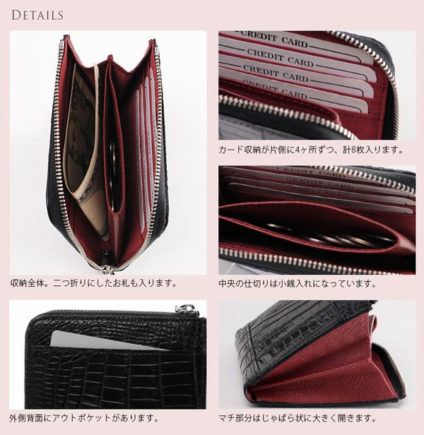 他の画像を見る exotic leather クロコダイル 財布 L字 ファスナー シャイニング 加工 カットワーク デザイン【ネコポスで送料無料】 4FA ¥ 5,720 税込 (0件) お気に入りに登録する
